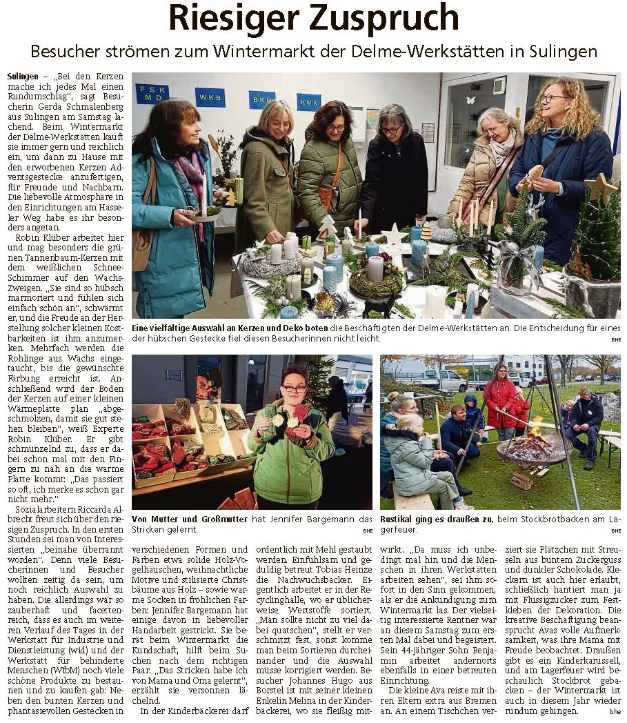 Über den großen Erfolg unseres Wintermarktes in unseren Sulinger Werkstätten am Hasseler Weg berichtet die Sulinger Kreiszeitung: