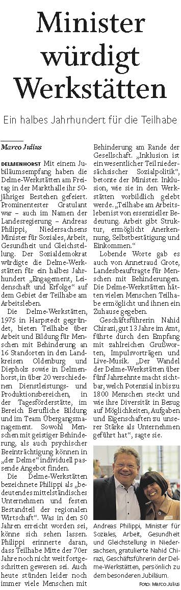 Marco Julius vom Delmenhorster Kreisblatt berichtete einen Tag später von unserem gelungenen Jubiläumsempfang am 9. Mai 2025: