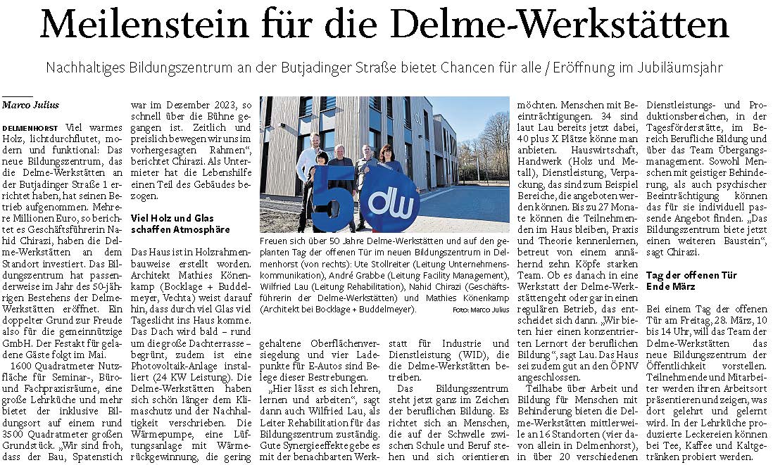Als "Meilenstein" bezeichnet Marco Julius vom Delmenhorster Kreisblatt in seinem Artikel unser neues Bildungszentrum in Delmenhorst: